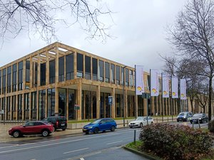 Eine 30-köpfige Wirtschaftsdelegation mit technischem Background im Bereich (Massiv-)Holzbau weilte neun Tage lang in Österreich. Zunächst hatten sie am internationalen Holzbau Forum in Innsbruck teilgenommen, anschließend tourte man durch Österreich und besuchte u.a. Holzverarbeitungsbetriebe sowie herausragende, realisierte Gebäude mit Holzkonstruktion. Ein Ziel dieser Reise war das als Passivhaus Plus zertifizierte Studentenheim "Mineroom" in Leoben.